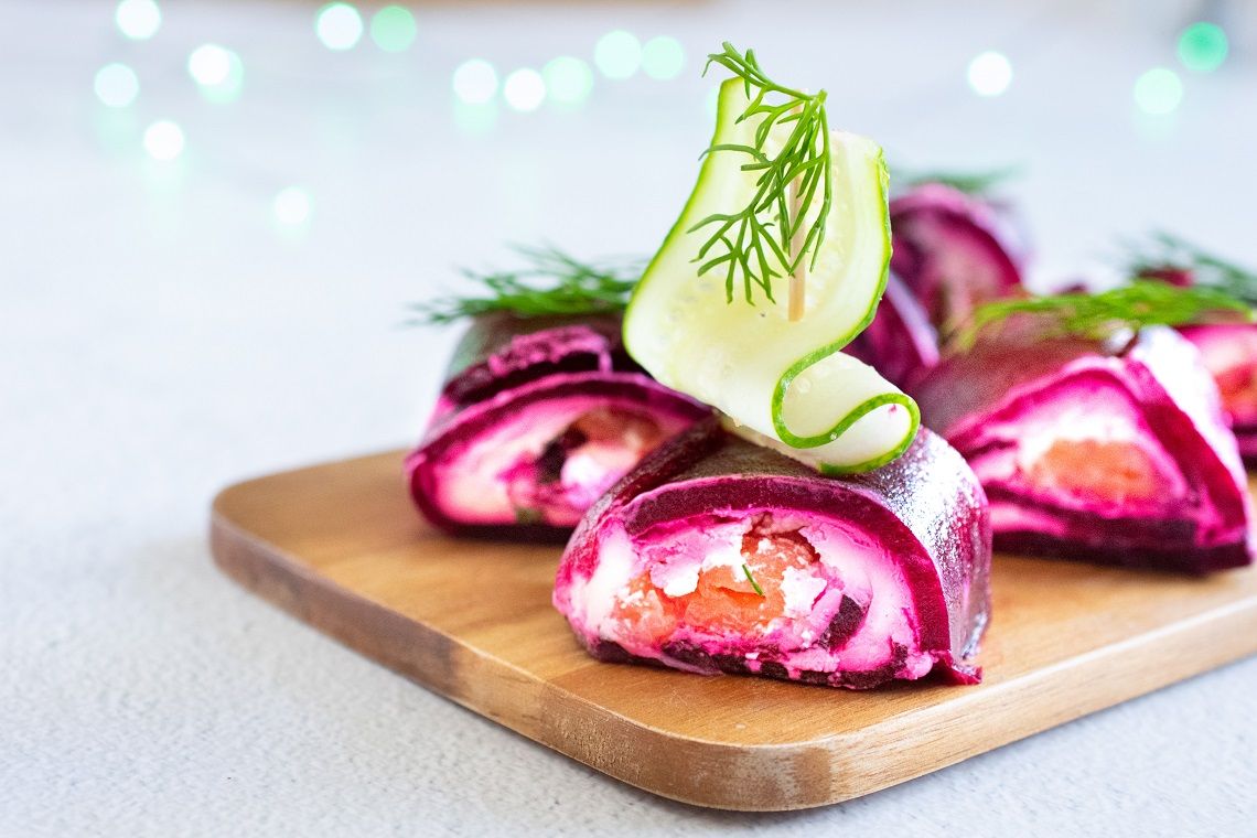 Burokėlių suktinukai su kreminiu sūriu ir lašiša