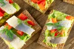 - 2Avokadų kremą tepti ant duonelių ar skrudintos ir atvėsusios duonos.