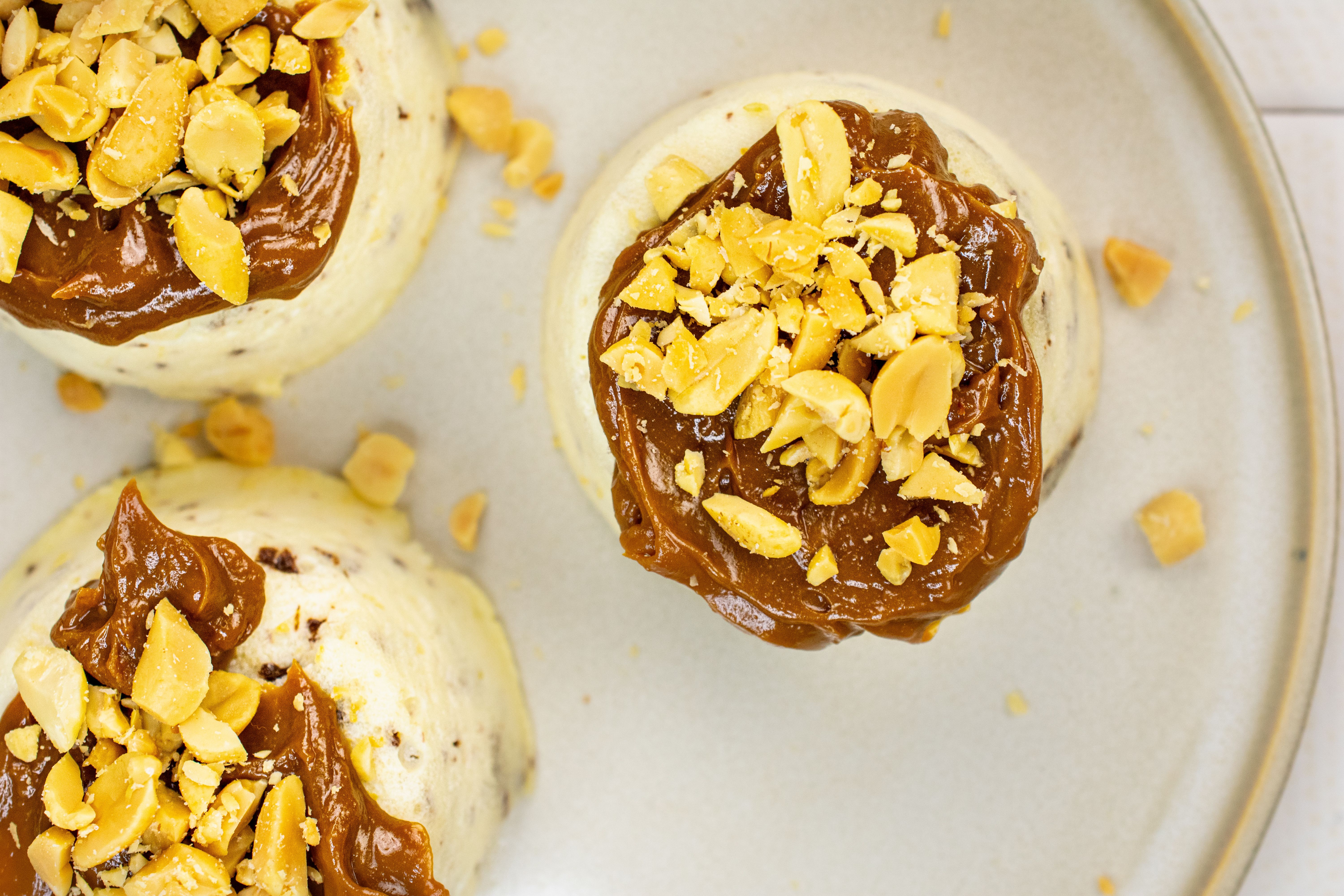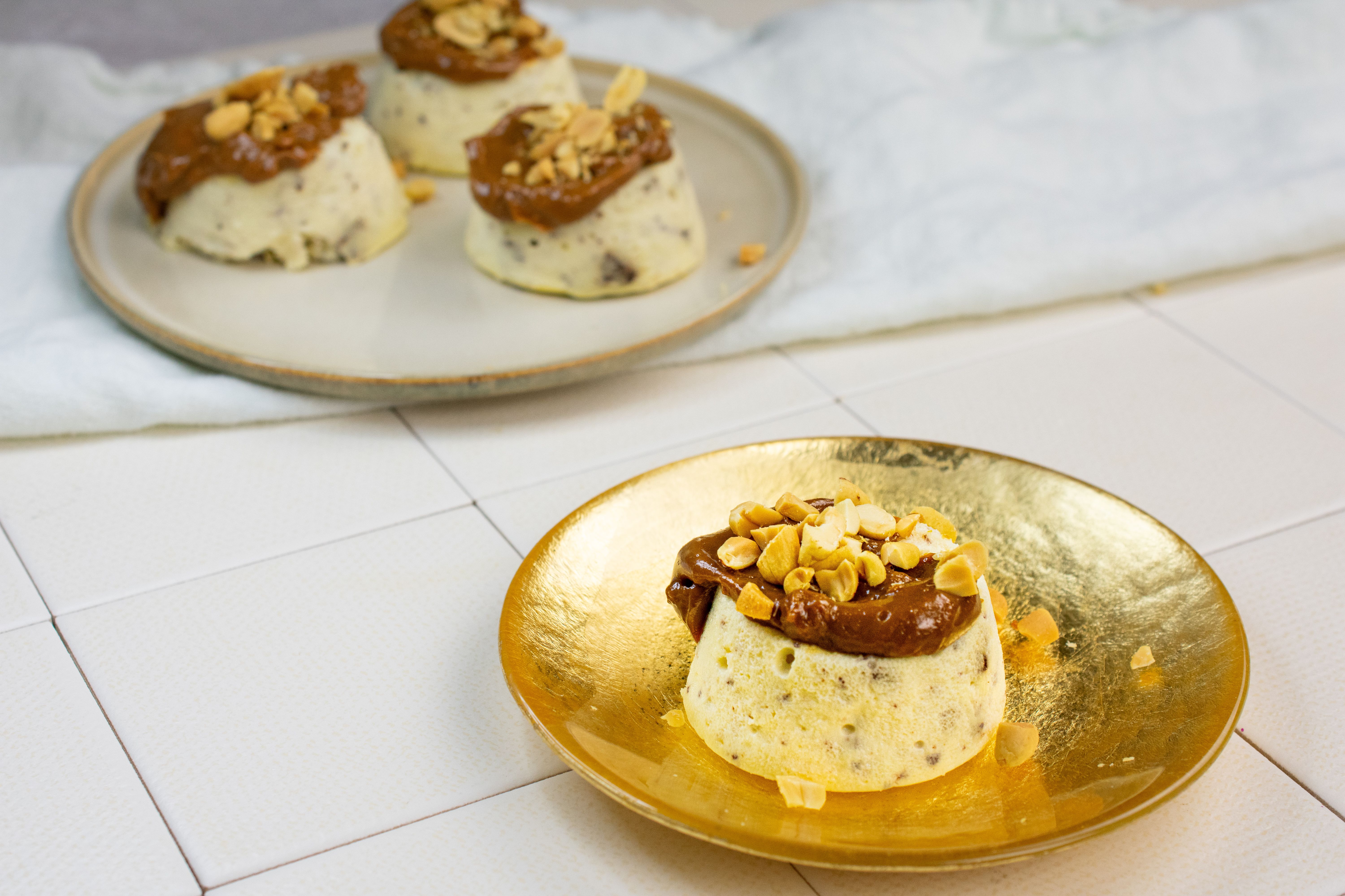 Šiems pyragėliams reikės vos kelių paprastų produktų: šviežios varškės iš kibirėlio, kiaušinių, cukraus, juodojo šokolado, krakmolo ir žiupsnelio druskos. Viršui – karamelizuoto kondensuoto pieno (galite naudoti „Rududu" ar panašų) ir sūdytų kepintų žemės riešutų. Svarbu, kad varškė būtų kambario temperatūros – taip masė bus vientisesnė ir lengviau susimaišys.