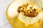 Prieš patiekiant karamelizuotą kondensuotą pieną pašildykite garų vonelėje – taip jis taps minkštesnis ir lengviau paskleidžiamas. Pyragėlius atsargiai išimkite iš formelių, apverskite ir dosniai aptepkite karamele. Viršų papuoškite kapotais sūdytais riešutais. Patiekite iškart arba laikykite šaldytuve iki šventinio momento – šie pyragėliai puikiai tinka Kalėdoms, Naujiesiems ar bet kuriai ypatingai progai.